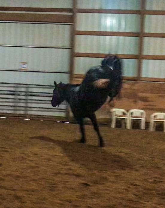 ZB wasn't wearing the latest matching outfit. She didn't even have front boots on. Her mane hangs below her neck now.
